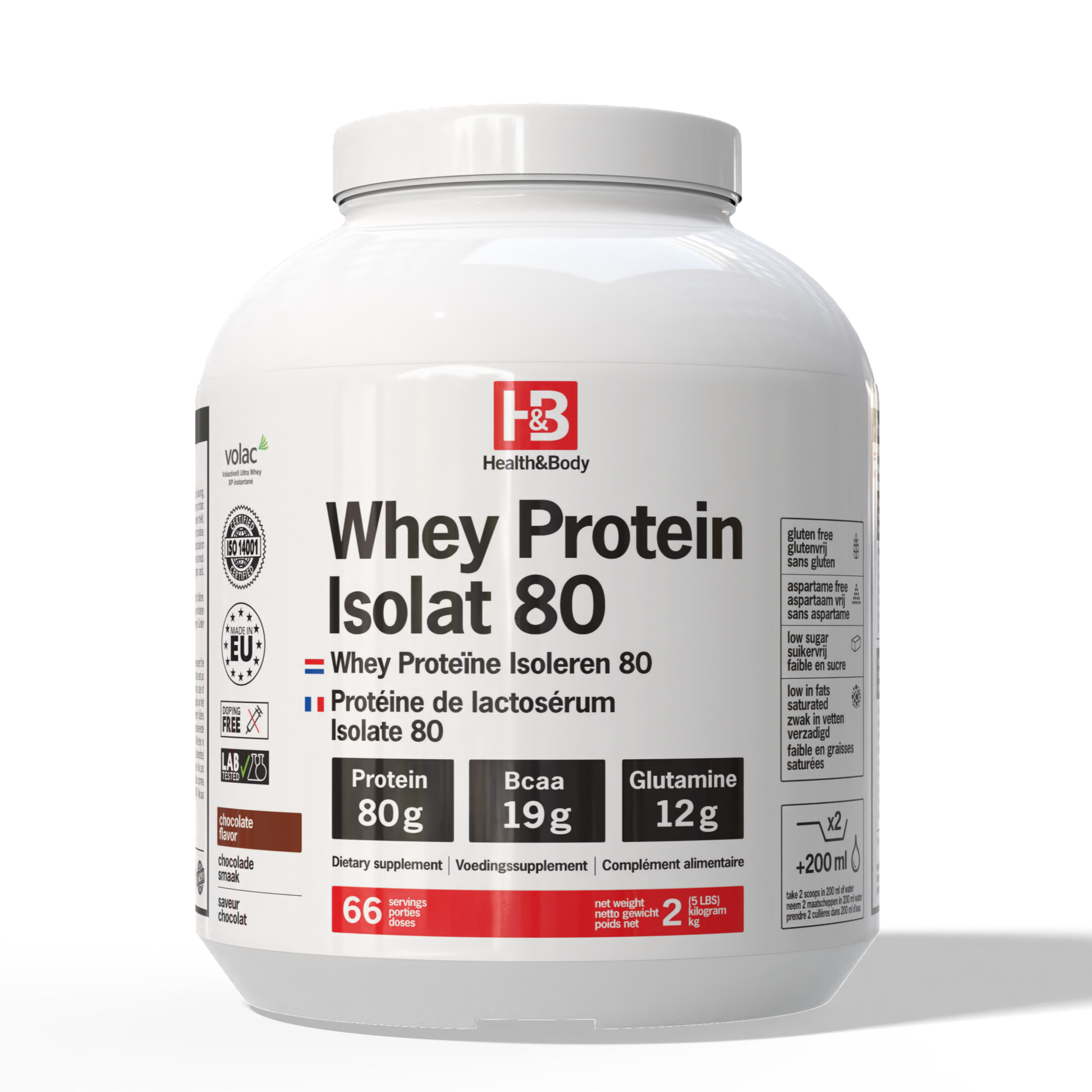 - Pureté Exceptionnelle : Health and Body utilise uniquement de la whey protein isolat de la plus haute qualité, garantie sans gluten. Cela signifie que chaque portion est une explosion de protéines pures, sans impuretés ni additifs inutiles.